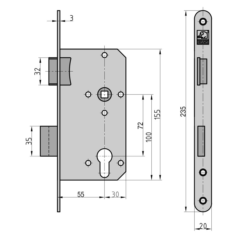 - Basi Einsteckschlösser entsprechen den Vorgaben nach DIN 18251-1, Klasse 2.