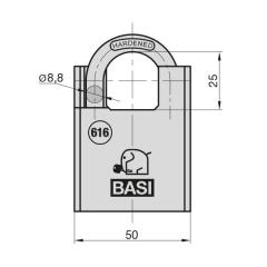 Het hangslot VHS 616 biedt maximale bescherming: het is uitgerust met een 50 mm brede, gecoate massieve stalen behuizing. Voor extra veiligheid zorgen de geharde stalen beugel met een diameter van 8.8 mm en de beugelbescherming. Bovendien wordt de beugel aan beide zijden vergrendeld met een kogelvergrendeling. Het hangslot VHS 616, met verschillende sluiting, wordt geleverd met 2 baardsleutels.