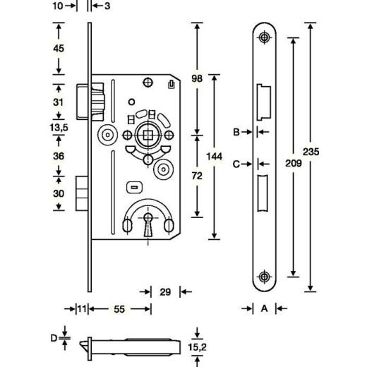 Binnendeur Insteekslot BB 20/55/72/8 mm DIN links zilver afgerond Klasse 1